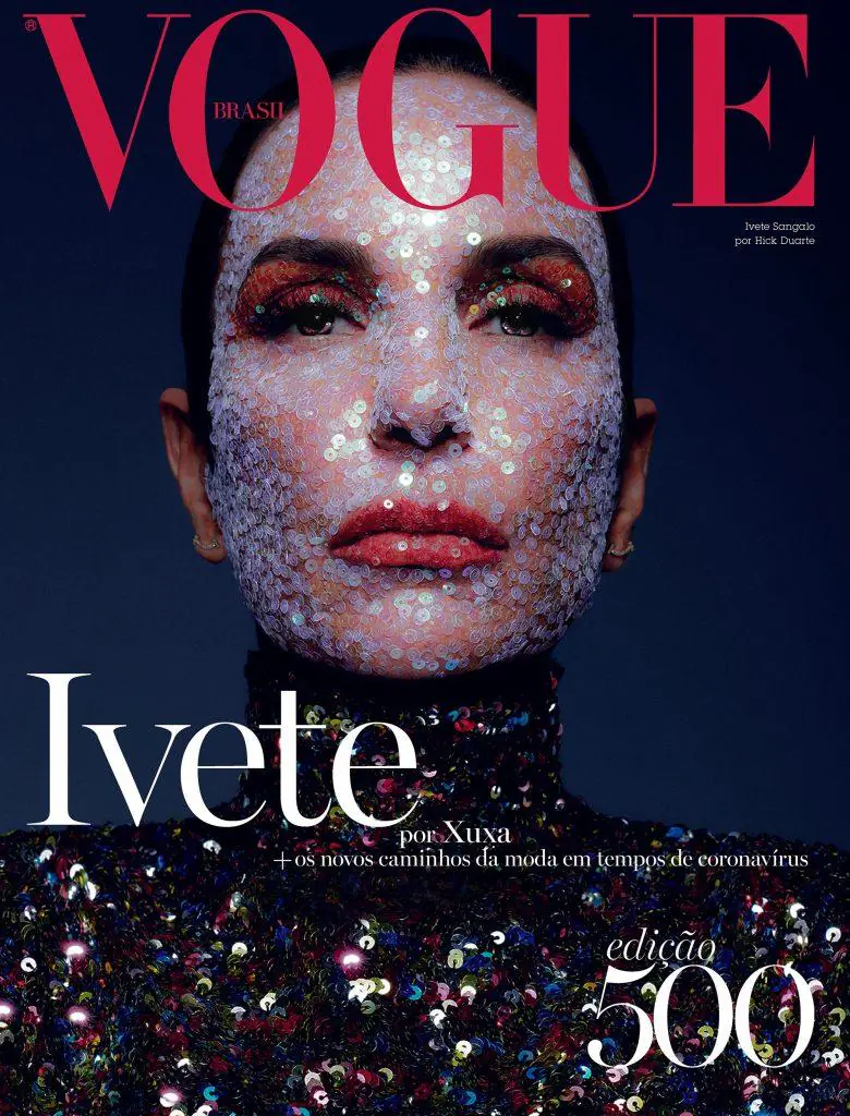 Em contrapartida aos posicionamentos da Vogue Itália e Portugal, a Vogue Brasil divulgou, em seu Instagram, que manteria o compromisso de informar, entreter e inspirar seus leitores de maneira otimista ‘’mas não alienada’’ durante o período da pandemia. Chegou abril. E o que se viu no lançamento da revista que comemora a sua edição de número 500 foi muito mais o desejo pela festa do que a sensibilidade frente ao que se vivia do lado de fora, nas casas e hospitais brasileiros. Destaque para Ivete Sangalo, que aparece na capa com expressão séria e com uma máscara (não de proteção) de paetês. A celebração da vez é sem festas e sem sorrisos. Pois não devia haver celebração, de fato. E nem uma capa que traz paetês e uma tentativa frustrada de fazer a revista caber no momento atual do país.