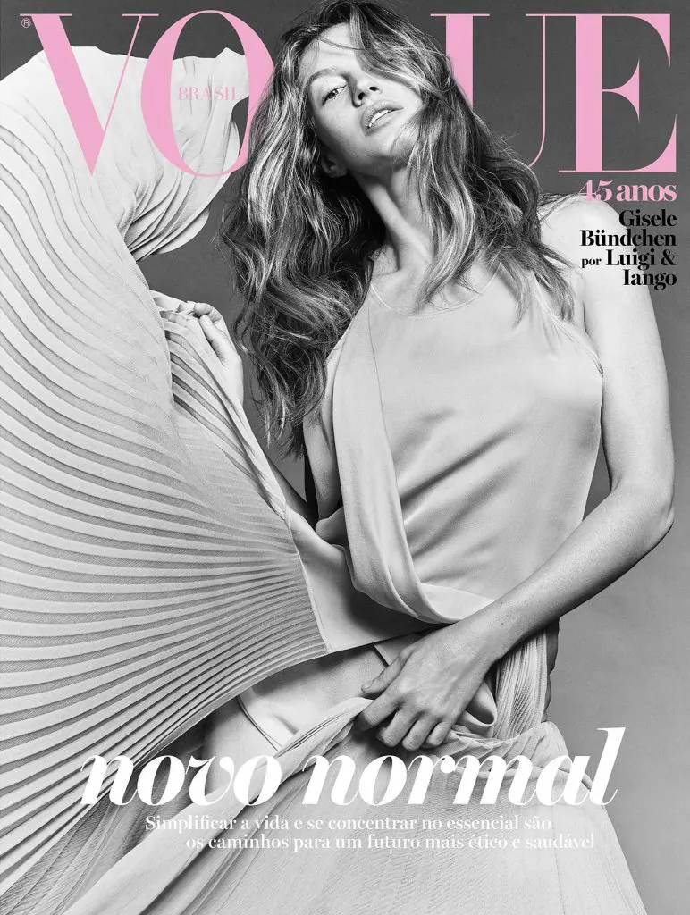 Mas a história e o enredo não pararam por aí. No mês de maio, na edição de 45 anos da Vogue Brasil, uma outra bola fora. Tanto na imagem quanto na manchete que vinha com ela: Gisele Bundchen com a mensagem de “O Novo Normal”. A imagem que carrega todos os padrões do mundo “antigo”: mulher branca, magra, rica e da moda, vestindo uma grife internacional de luxo. A edição, com a ubermodel, colocou em xeque a sintonia da revista com o que se vive com o coronavírus no Brasil, mais uma vez e fez um séquito de leitores criticarem a visão e posicionamento da revista.